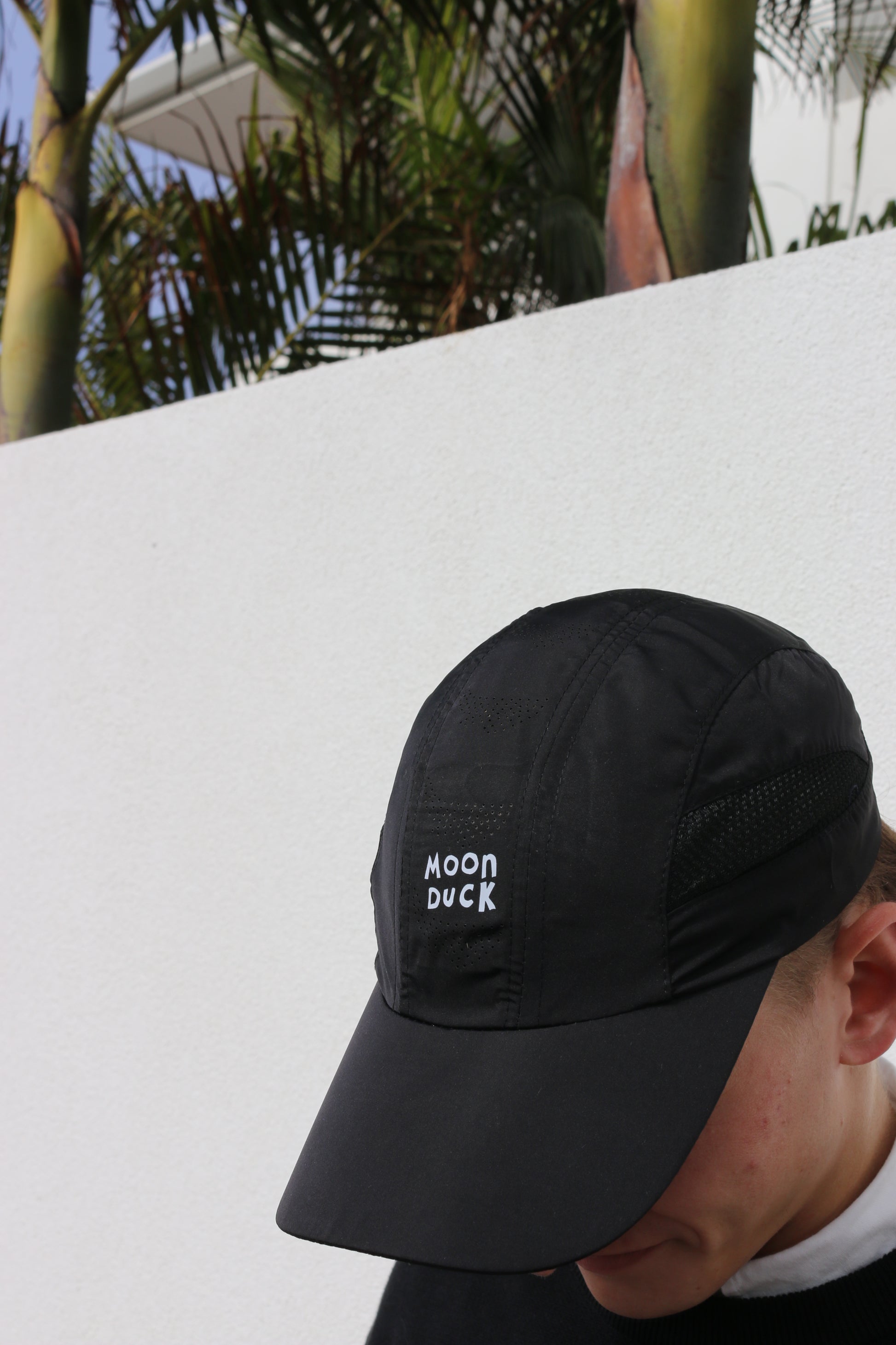 Moonduck logo reflective branding to crown and above back strap